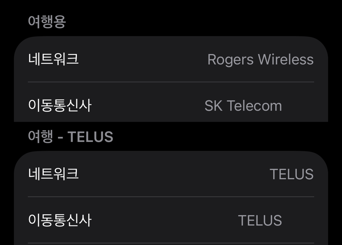 저에 경우는 한국 통신사를 USIM으로 핸드폰에 꽃아 두고, Telus를 ESIM으로 진행했습니다.